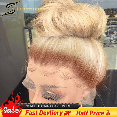 613 Blonde Brazilian Remy Human Hair Full Lace Frontal Wig 28-30 Inch