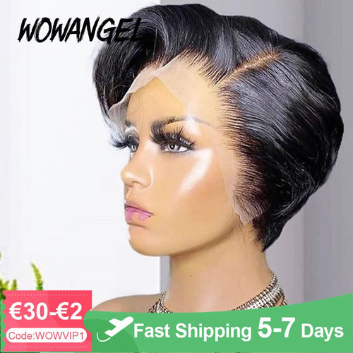 Peruvian Straight Short Pixie Cut Remy Human Hair 13x4 Pre-Plucked Lace Wig 150% Density